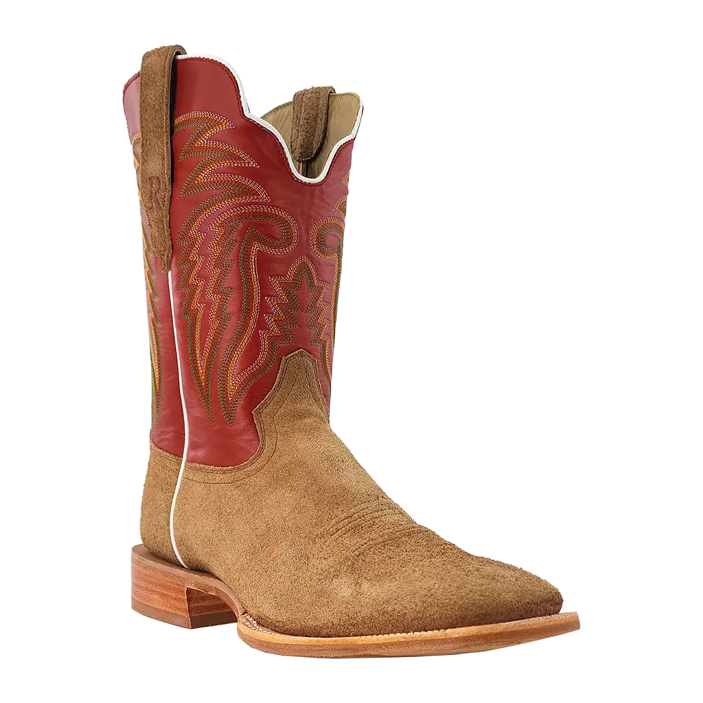 R. Watson presents these roughout and cowhide western boots. These boots have a 10 row stitch pattern, R. Watson comfort system, all leather stacked heel, counters, solid steel shank, and 10 iron outsole. 11″ total in height.